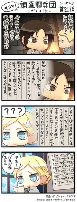 進撃の巨人ちみキャラ4コマ漫画 4コマ 調査兵団 リヴァイ班 Season3 1話 22話のツイート引用まとめ 進撃の巨人ちゃんねる